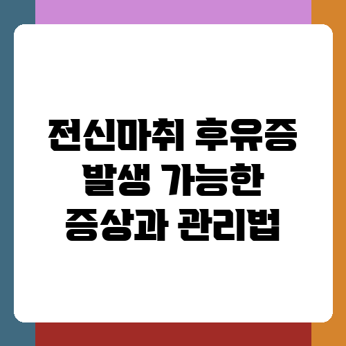 수술 후 회복 과정에서 겪는 어려움, 전신마취 후유증에 대해 걱정하시는 분들이 많더라고요. 전신마취는 수술의 필수 과정이지만, 몸에 무리가 갈 수 있다는 사실을 알고 계신가요? 이 글에서는 전신마취 후 흔히 나타나는 후유증과 그 관리법에 대해 자세히 알아보고, 건강한 회복을 위한 정보를 제공하고자 합니다. 편안한 마음으로 읽어보시고, 궁금한 점은 언제든지 문의해주세요.