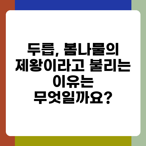 봄철 건강을 책임지는 두릅! 이제 두릅의 매력에 푹 빠져보세요. 향긋한 두릅으로 봄철 건강과 맛을 동시에 잡아보시기 바랍니다. 다음에는 또 다른 봄나물 이야기로 찾아뵙겠습니다!