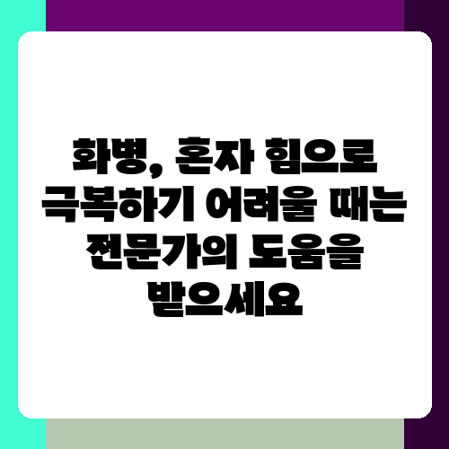 화병 증상이 지속되거나, 심각하다면 혼자서 해결하려고 하지 말고, 정신건강 전문의나 심리 상담사의 도움을 받는 것이 좋습니다. 전문가들은 개인의 상황에 맞는 적절한 치료법을 제시하고, 스트레스 관리 방법을 배우는데 도움을 줄 수 있습니다. 주저하지 말고 전문가의 도움을 받아 건강한 삶을 되찾으세요. 힘든 시간을 보내고 있다면, 꼭 전문가의 도움을 받아보시길 바랍니다. 자신의 건강을 위해 시간을 내는 것이 얼마나 중요한지 다시 한번 생각해 보는 기회가 되었으면 좋겠습니다. 여러분의 건강을 응원합니다!