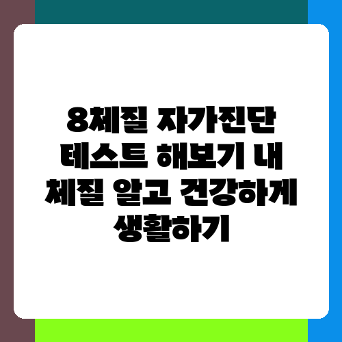 건강하게 오래 살고 싶은 건 누구나 바라는 마음일 거예요. 하지만 똑같은 음식을 먹고 같은 운동을 해도 체질에 따라 효과가 다르다는 사실, 알고 계셨나요? 요즘 많은 분들이 자신의 체질을 이해하고 건강 관리에 활용하는데 관심이 많더라고요. 특히 8체질 의학은 개인의 체질에 맞는 생활 습관을 제시하여 건강을 증진시키는 데 도움을 준다고 합니다. 이 글에서는 8체질 자가진단 테스트를 통해 나에게 맞는 체질을 알아보고, 건강한 생활을 위한 정보를 제공해 드릴게요.
